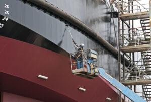 High-pressure washing to remove marine growth and contaminants